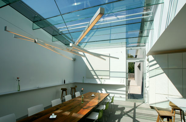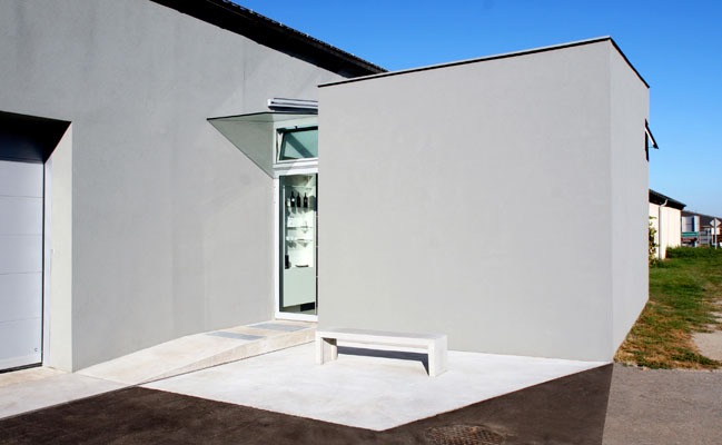 Wer das Weingut Weber besucht, entdeckt an der langen Fassade der schlichten Produktionshalle rasch einen zeitgenössischen Kommentar. Die Zäsur der Eingangstüre zwischen Alt und Neu lässt ein Stück aktueller Architektur im Inneren erahnen. Mit wenigen, gezielten Griffen wurde das bestehende Flaschenlager, das an die Halle grenzt, als heller, offener Verkostungsraum umgestaltet. Eine Nurglas-Isolierverglasung ersetzt das vorhandene Pultdach und bringt Licht in den fensterlosen Raum. Erwin Bauer |